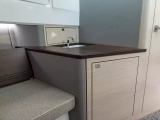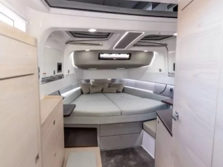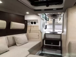 The modern day icons are standard on the 45-range. Forget about cramped front cabins with little light and transform your already airy front cabin by opening up the gullwing doors and letting the elements down into the front cabin. The modular layout allows for easy customization and versatility of space for this type of boat, accommodating various activities and preferences.