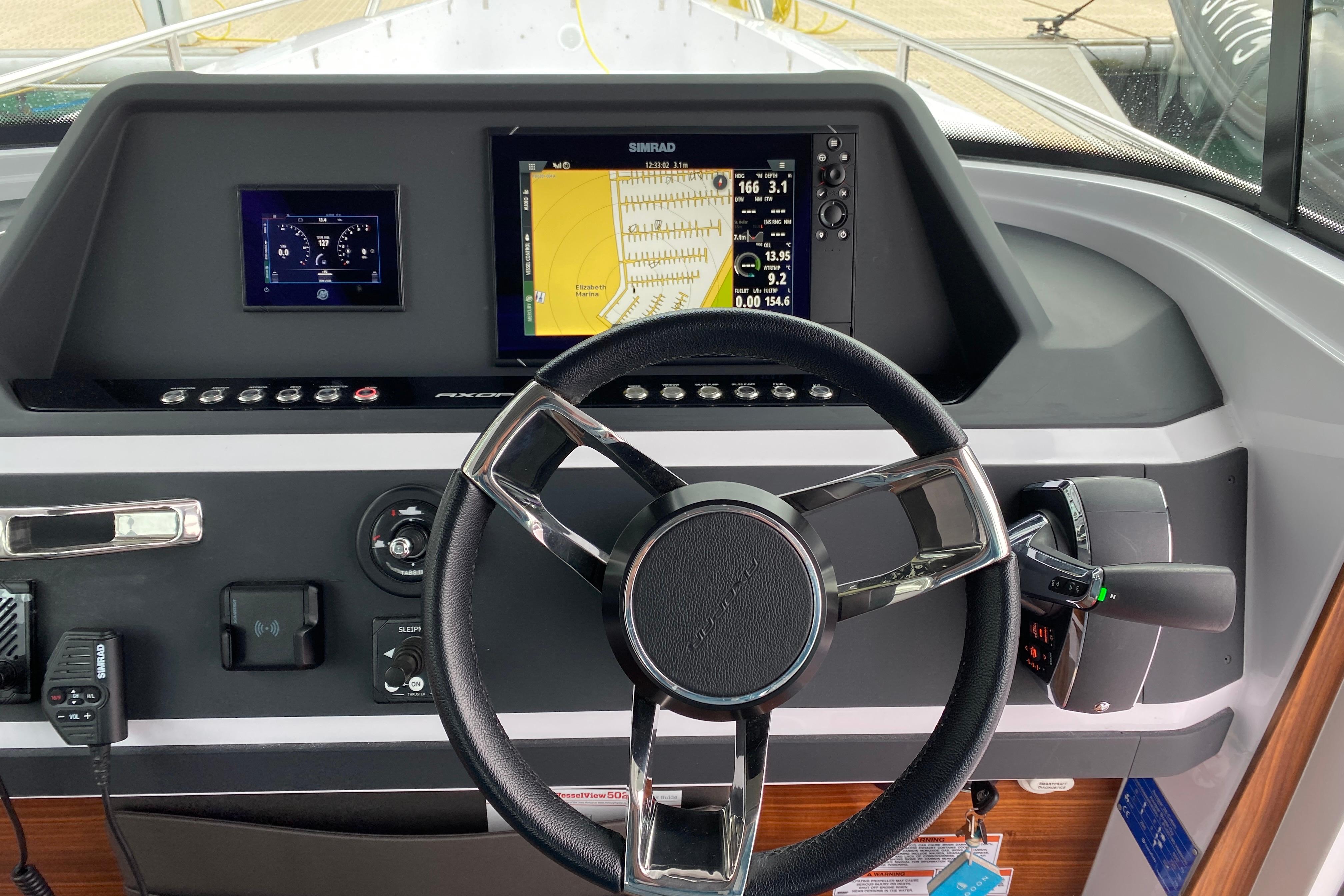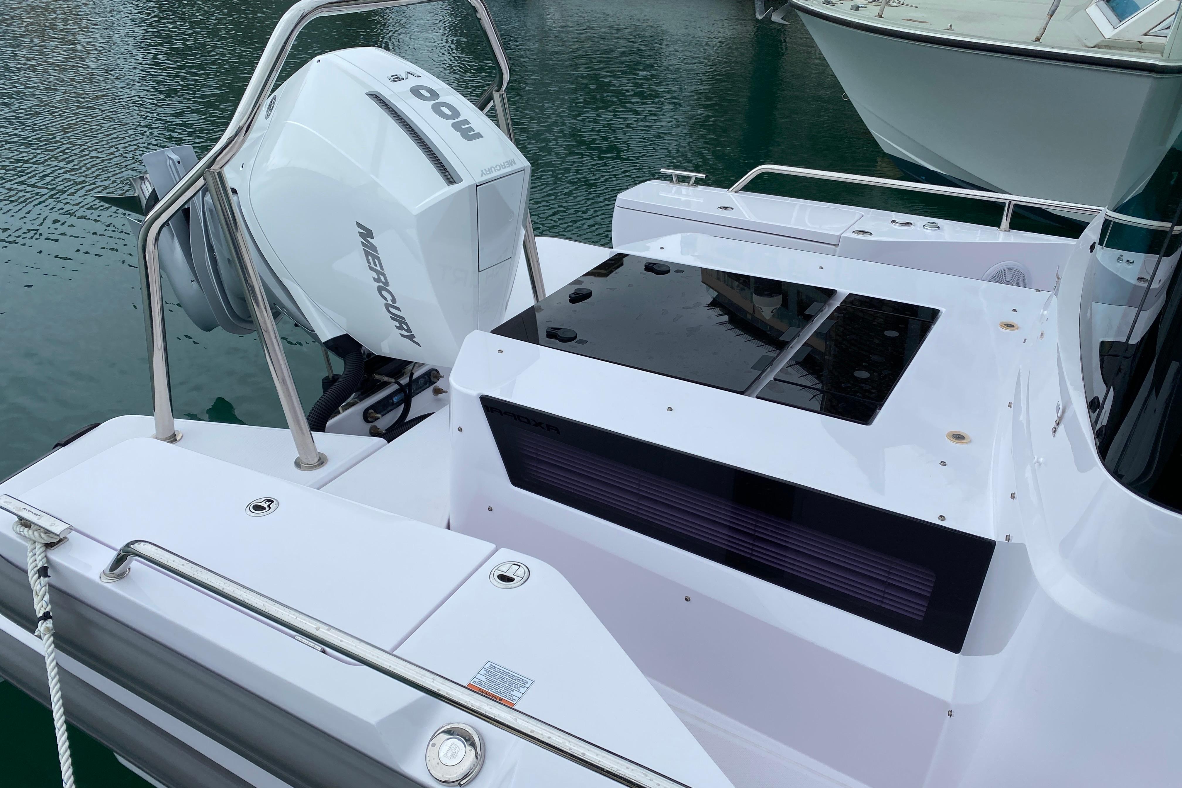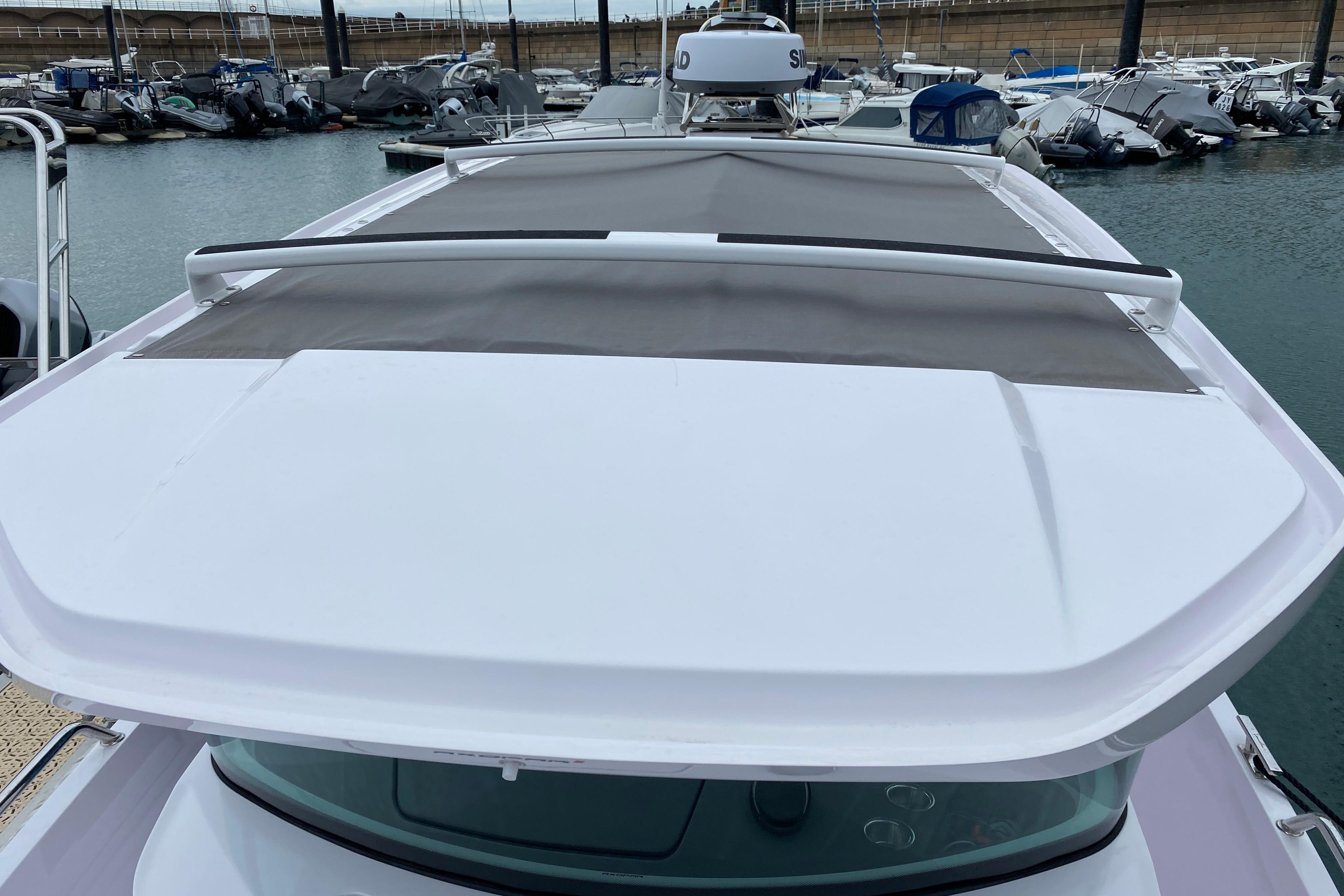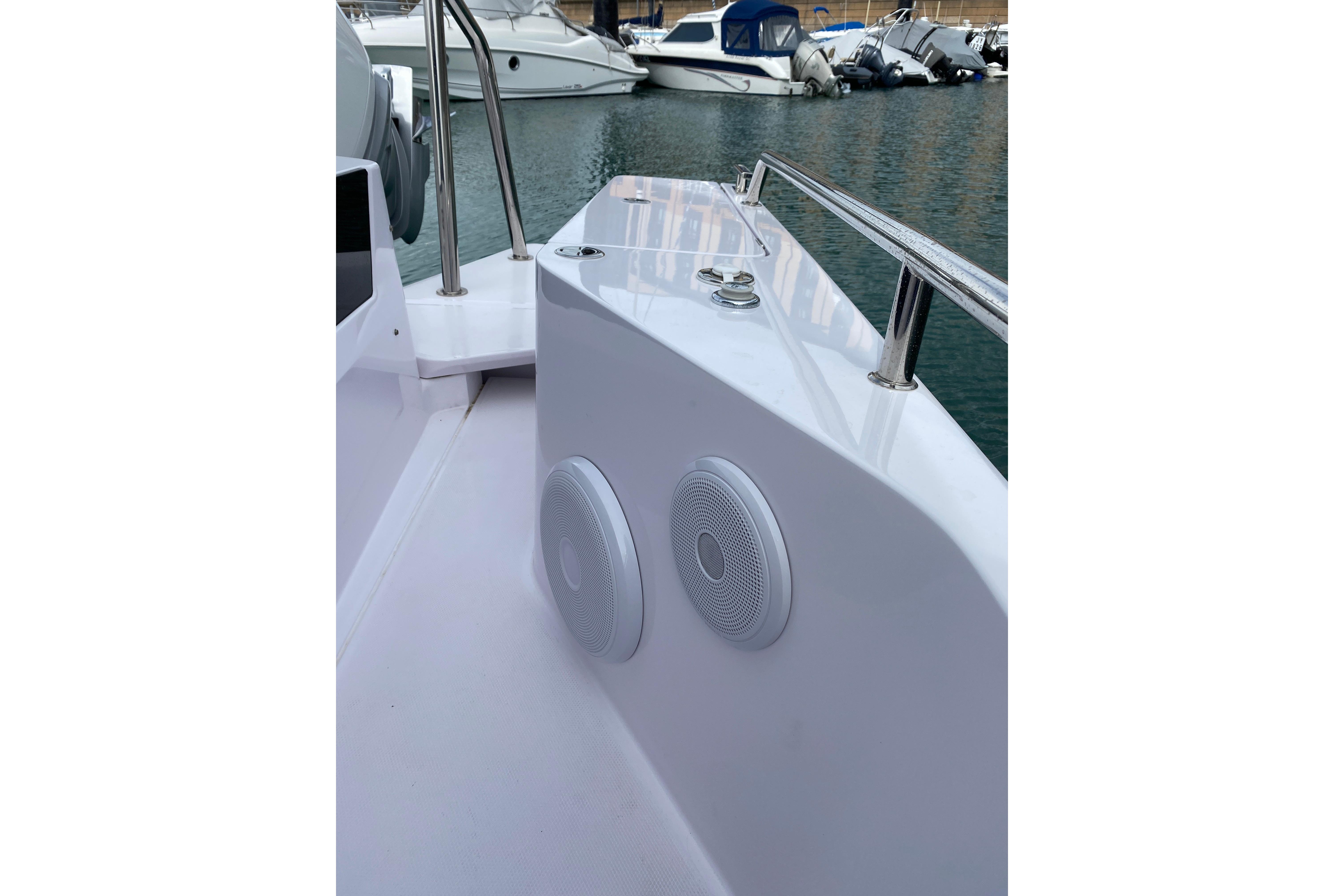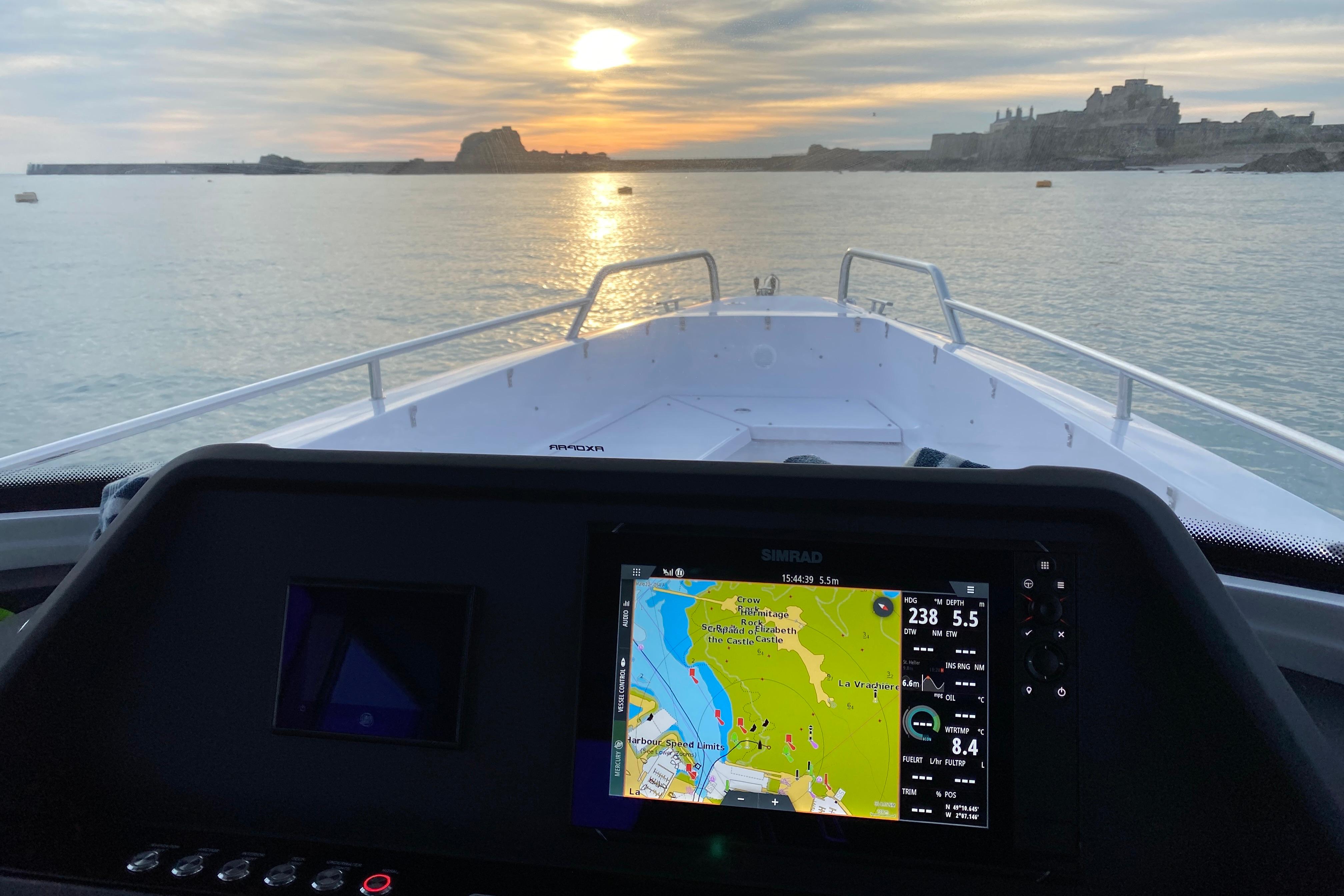 This Axopar 28 Cabin with a Mercury V8 outboard is a sporty, versatile 28-foot multifunctional boat featuring a protected, bright cabin with large sliding doors and sunroof, adaptable interior seating that can convert to berths allowing for 4 berths. Paired with a 300 hp Mercury Verado V8 outboard, it delivers brisk performance with top speeds, efficient cruising, excellent sea-keeping thanks to its twin-stepped deep-V hull, and comfortable all-weather usability for family cruising, watersports, fishing or coastal adventures. This boat can be viewed exclusively through Quay Boats, Channel Islands and comes with a FULL SERVICE HISTORY