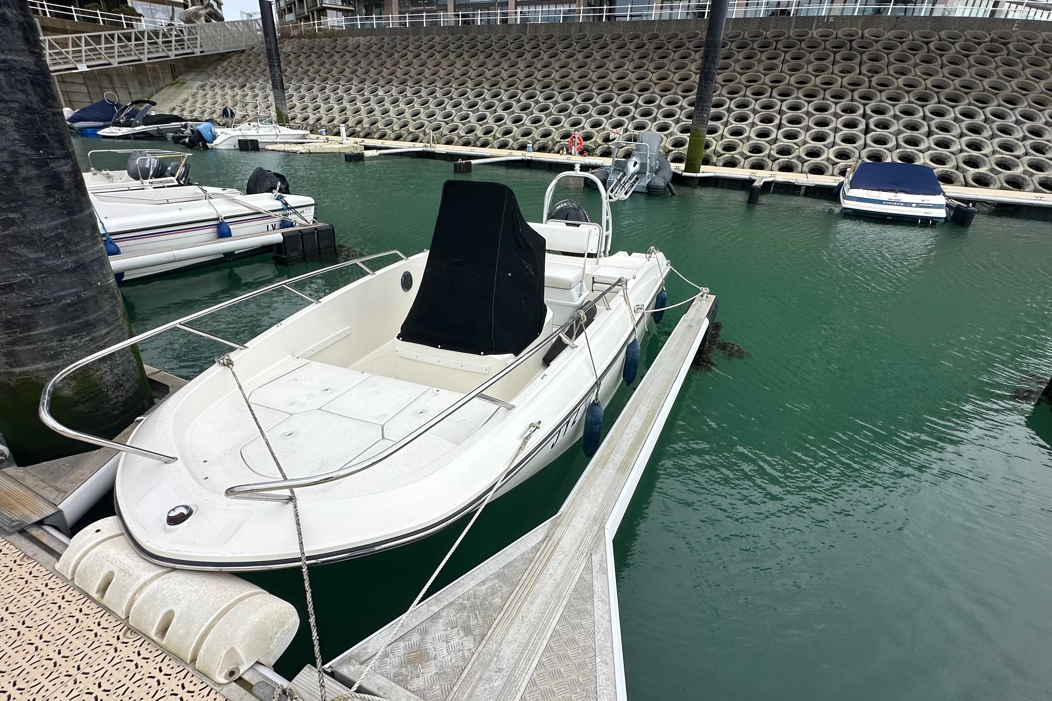 Bayliner CC6 fitted with a 115 hp outboard engine and a wakeboard tower is a versatile 6-metre center-console boat designed for both relaxed cruising and watersports. Its stable hull design provides smooth handling and good balance whether moving or at rest, while the powerful 115 hp engine delivers strong acceleration and speeds approaching the high-30-knot range depending on load and conditions. The open deck layout offers seating for around six people with a central helm, bow seating, and a spacious aft area, making it ideal for family outings or fishing trips. A wakeboard tower adds functionality for watersports by elevating the tow point for smoother pulls and also provides convenient board racks while features like an integrated swim platform, storage compartments, and a self-bailing cockpit make the boat practical and easy to use for a full day on the water.