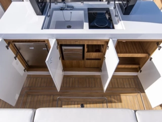 Description: The Pardo 38 is surprisingly spacious for a model of its size. Every aspect of its layout has been crafted with care. Every detail is considered, making the best use of the available space, while building in complete comfort for the guests on board. The interior can be configured in two different layouts. The standard layout includes one cabin with a double bed and a separate shower/head area. A further option offers a second cabin with two single beds. The interior is modern, bright and spacious, with plenty of natural ventilation thanks to its generous interior volume and height.