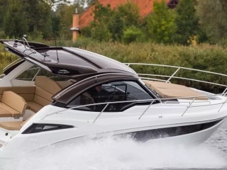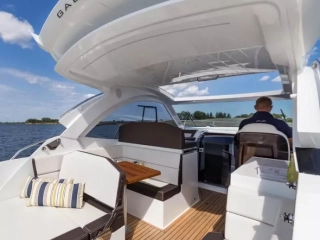 Take notice of the abundance of windows assuring all passengers panoramic views and brightening the cabins down below – spectacular!The 335 HTS joins the cruiser lineup of the Third Generation Galeon models and further improves on the already impressive performance and handling characteristics of the sporty 325 series it was based on. With upgrades to the hull design, layout and general aesthetics it truly warrants consideration as one of the premiere models in the segment.
