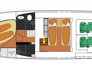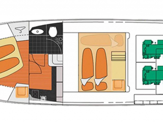 Two spacious cabins, a decent kitchen, shower and toilet with a big lounge, open space and sofa.