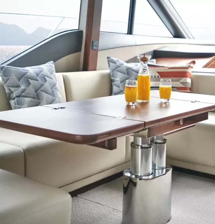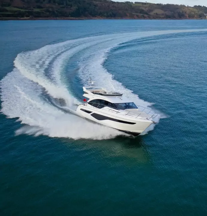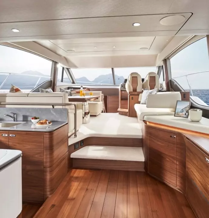 The F55 interior has an architectural presence and elegantly uses contrasting surfaces whilst retaining the elegance that Princess interiors are renowned for.PERFORMANCE